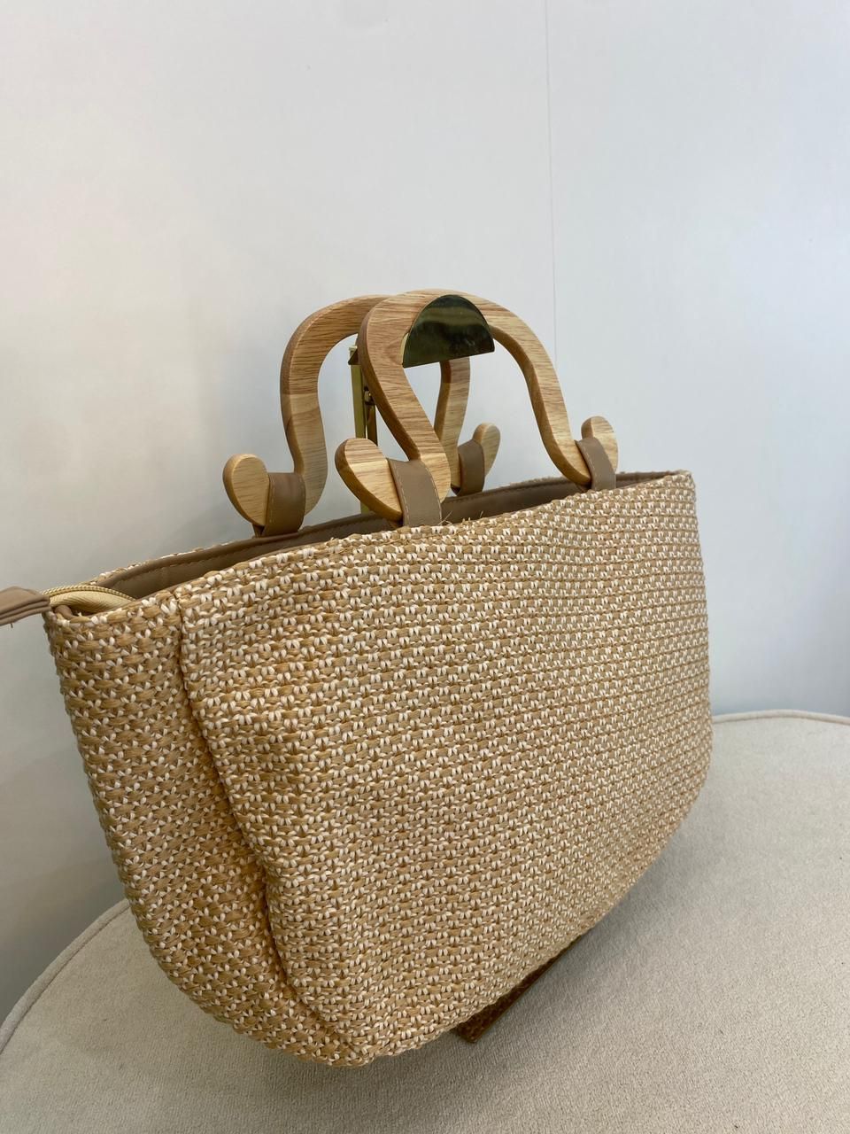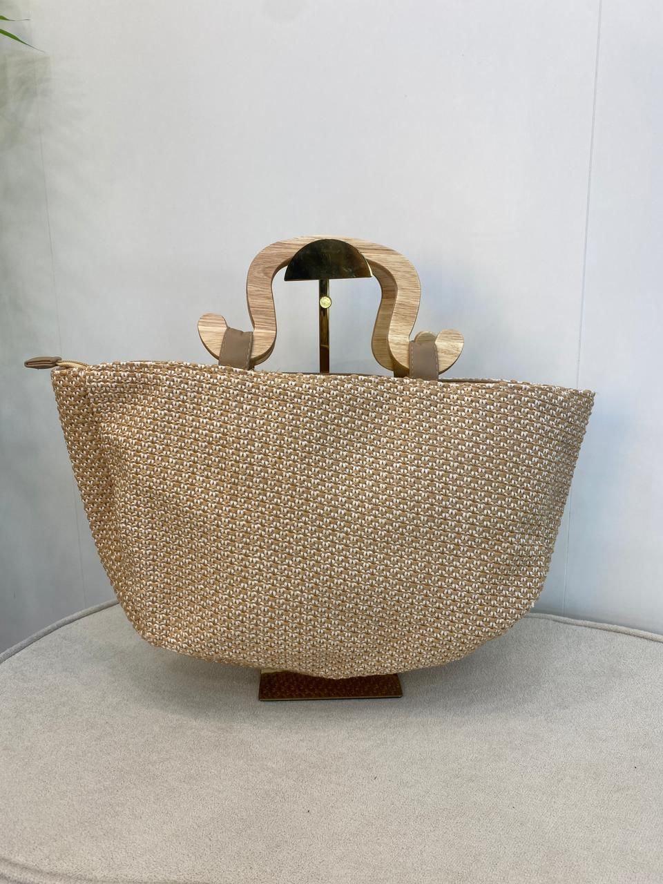 A Bolsa de Praia Palha Natural com Alça Escultural em Madeira é a união perfeita entre sofisticação, design e leveza, ideal para quem valoriza estilo nos dias de sol. Confeccionada em palha tramada de alta qualidade, ela traz um visual elegante e atemporal, com textura natural que combina perfeitamente com produções de verão. 🌾✨