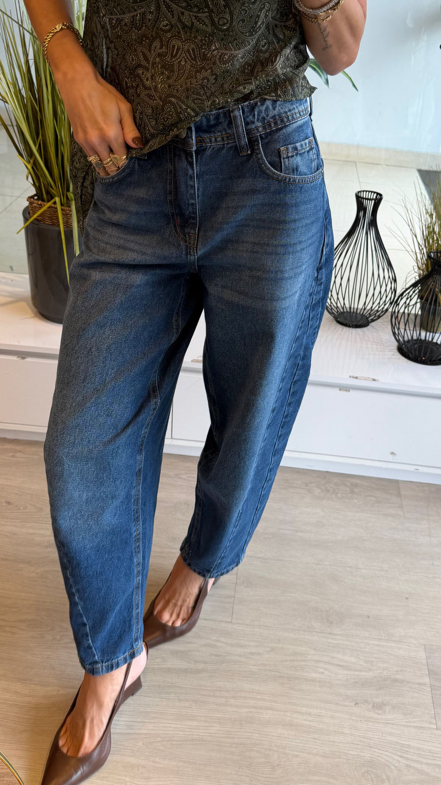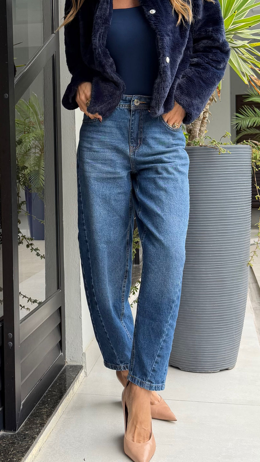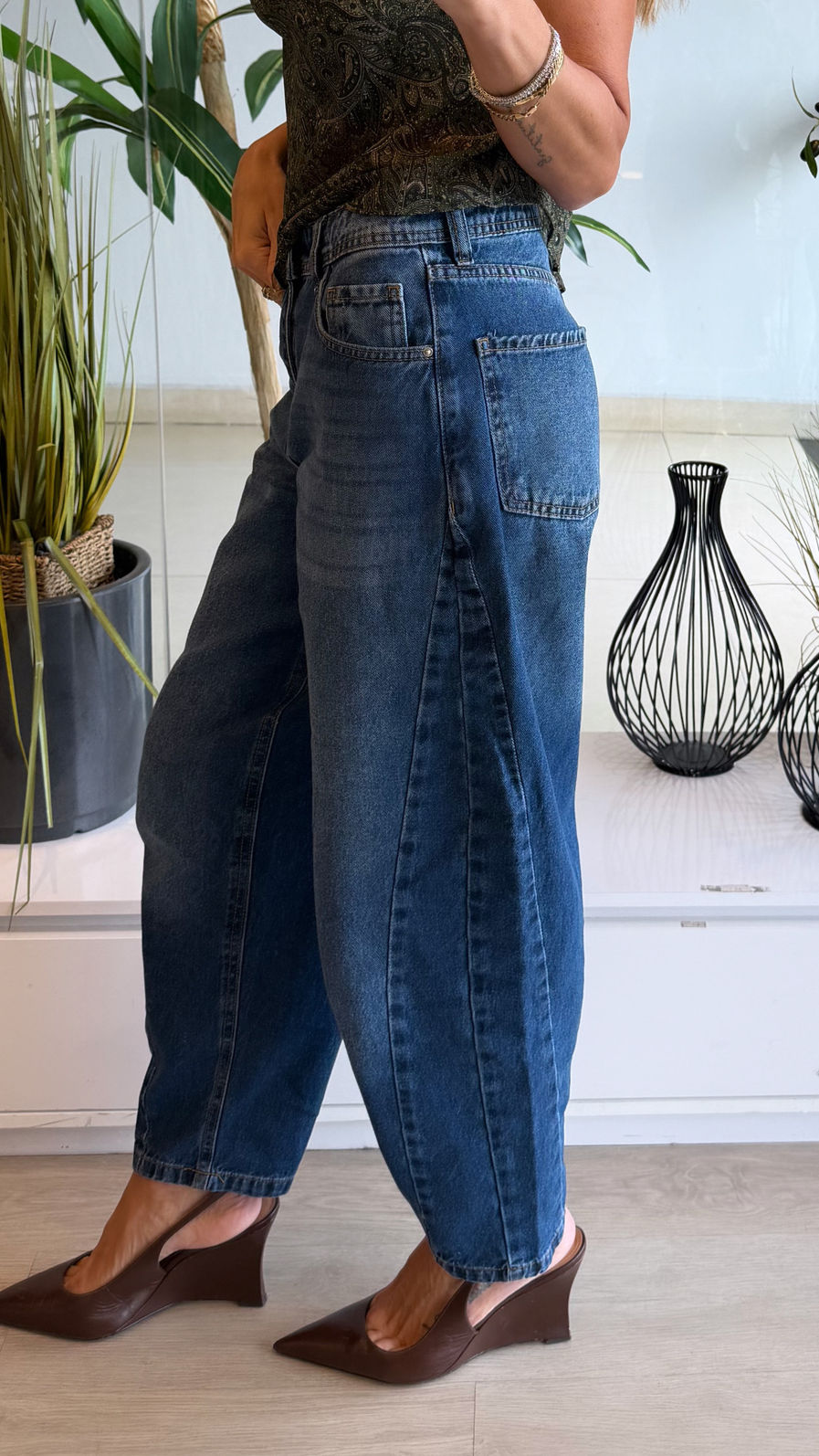 Jeans com modelagem barrel de cintura alta e caimento solto, que afunila suavemente na barra. Design contemporâneo com recortes laterais que valorizam a silhueta e trazem um visual atual. Confeccionado em denim estruturado, proporciona conforto e forma impecável ao vestir.