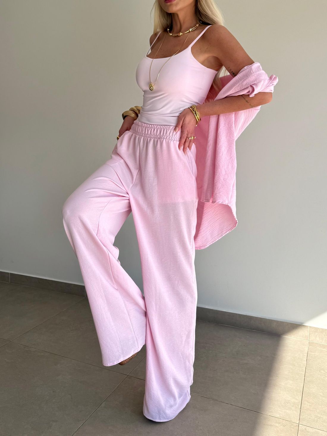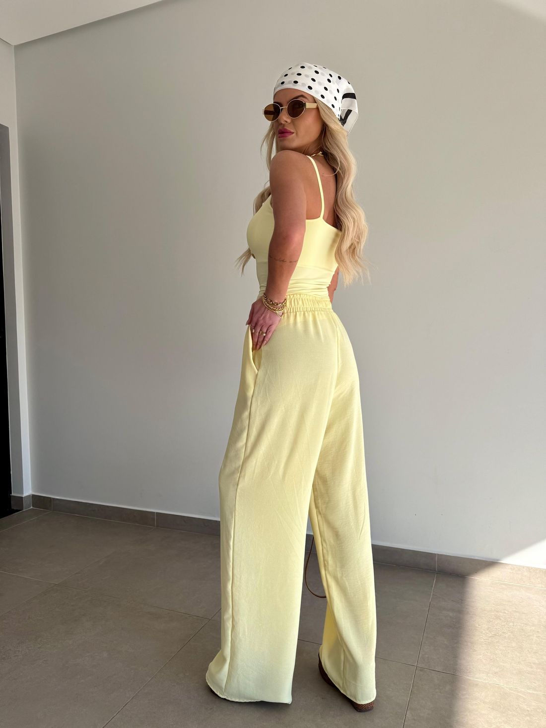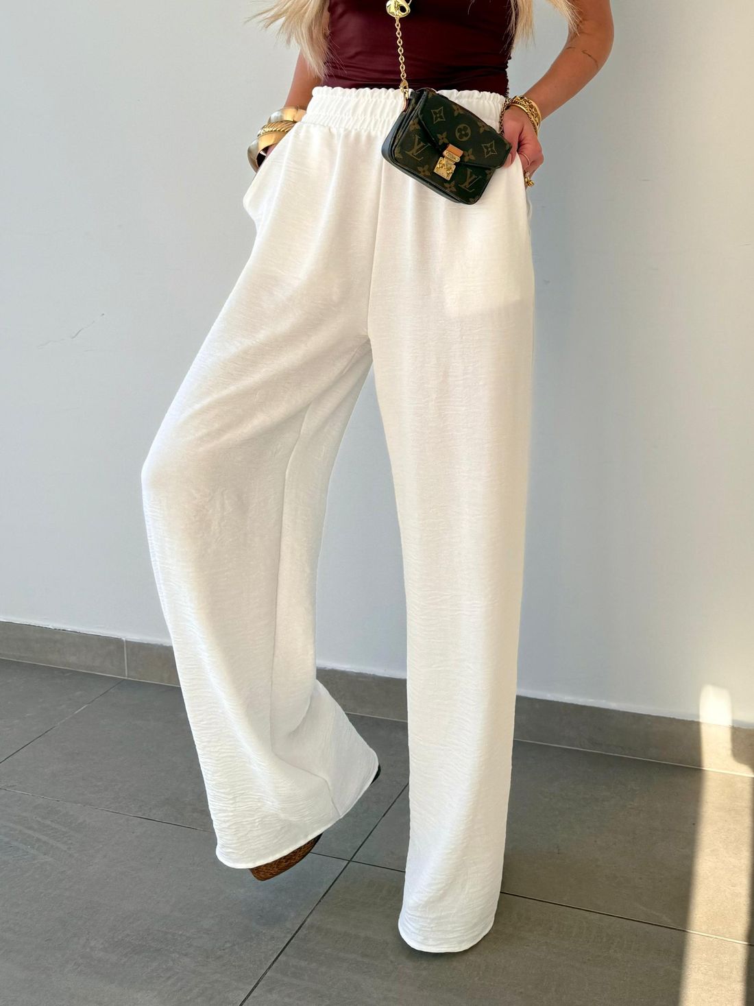 Com modelagem ampla e alongada, a calça valoriza a silhueta com fluidez e sofisticação. Conta ainda com bolsos funcionais e elástico na cintura, garantindo ajuste confortável ao corpo. Modelo sem forro, ideal para looks leves e descomplicados. 🔥