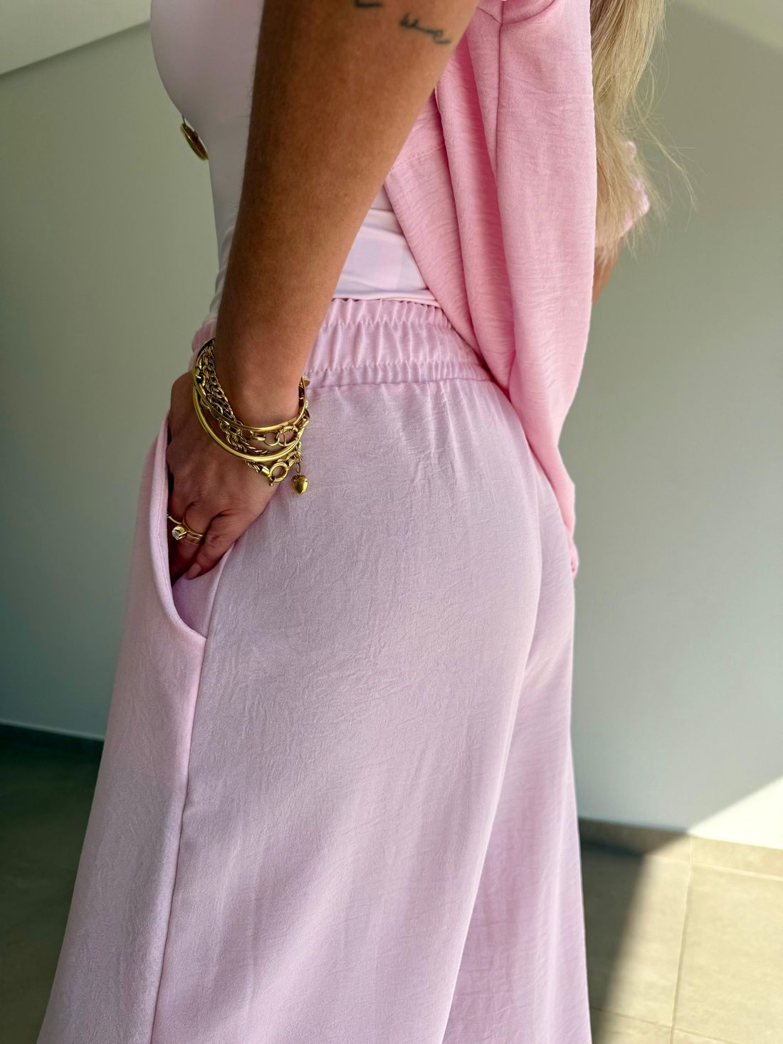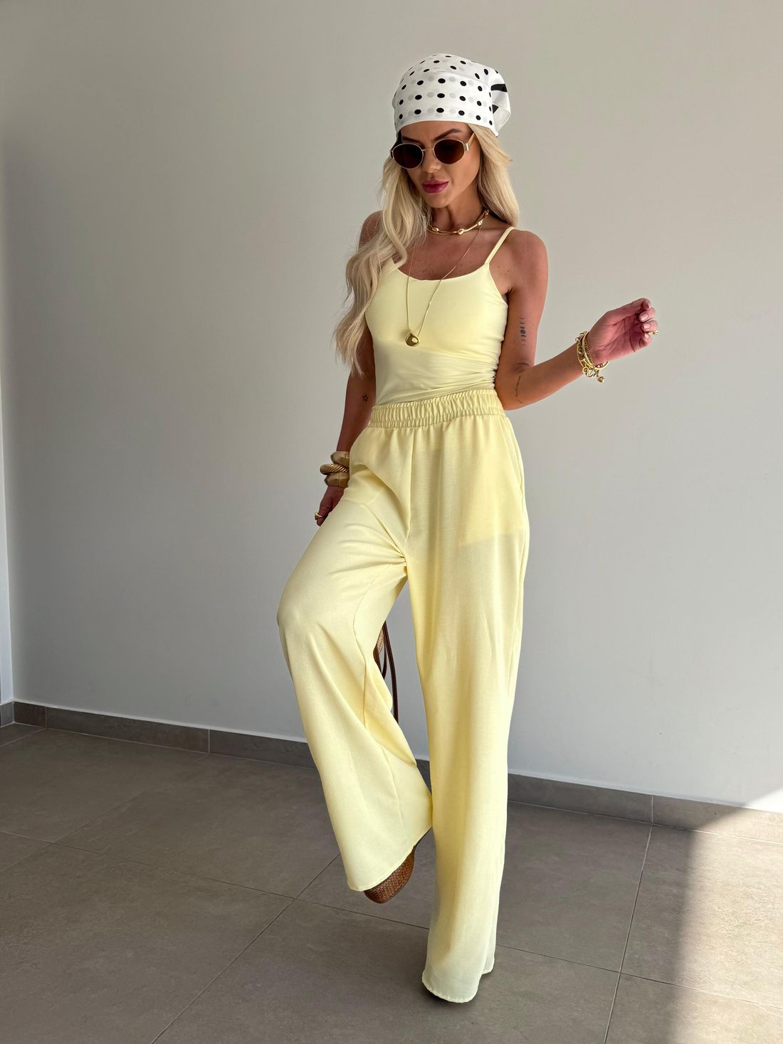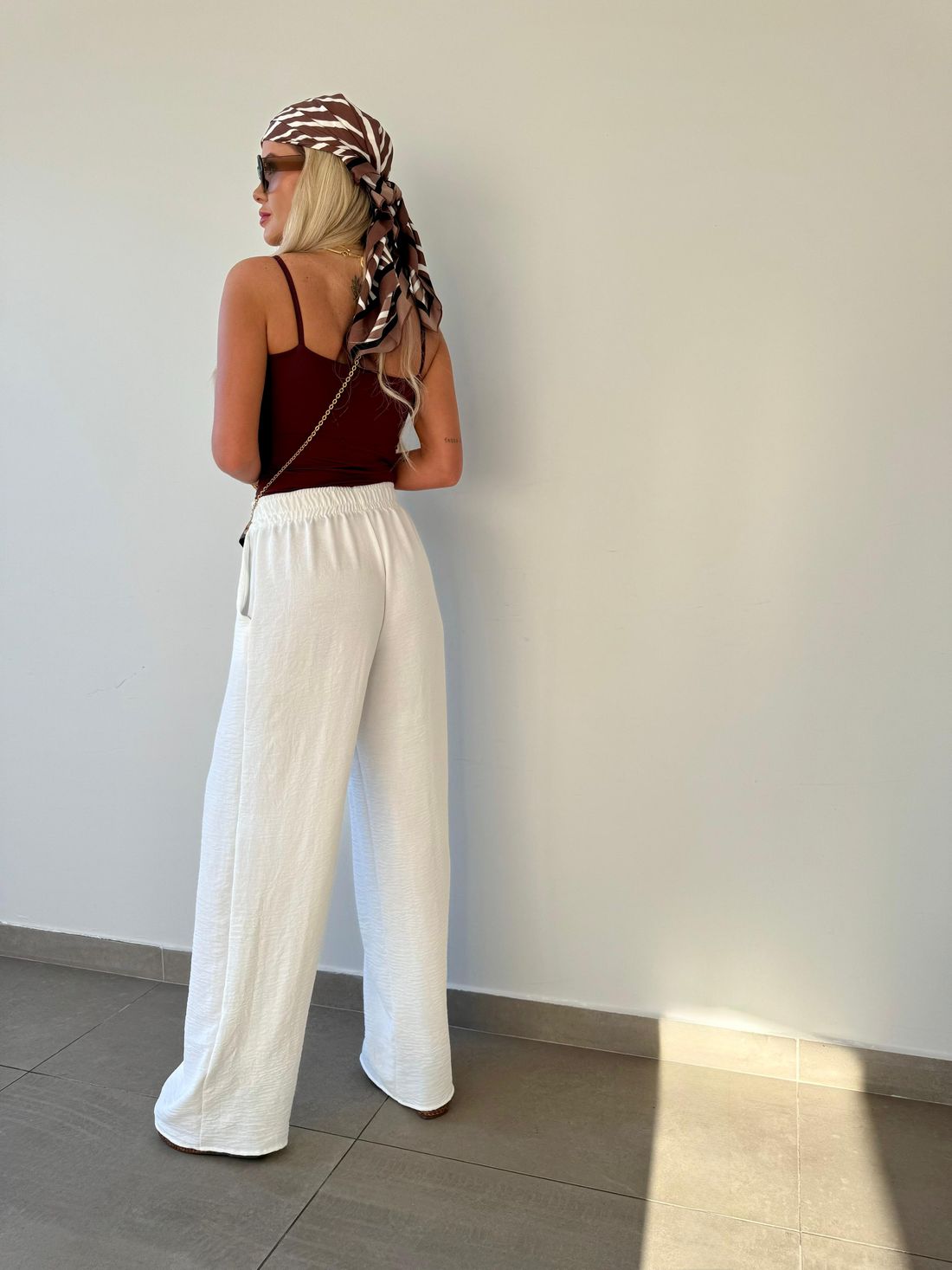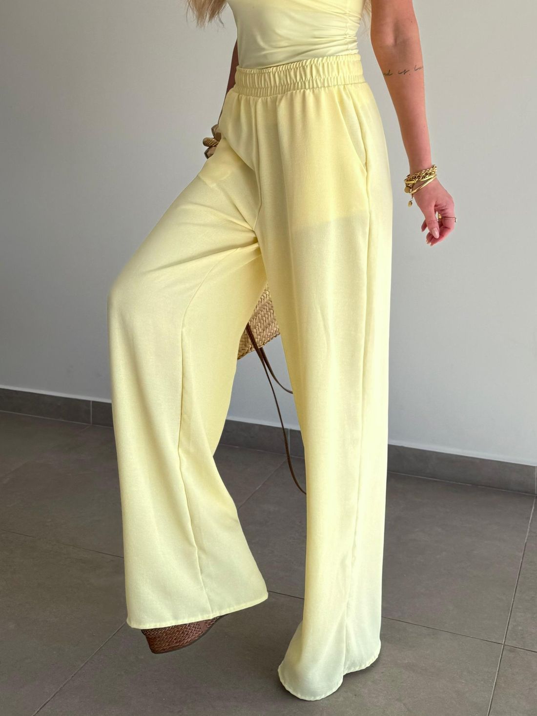 Com modelagem ampla e alongada, a calça valoriza a silhueta com fluidez e sofisticação. Conta ainda com bolsos funcionais e elástico na cintura, garantindo ajuste confortável ao corpo. Modelo sem forro, ideal para looks leves e descomplicados. 🔥