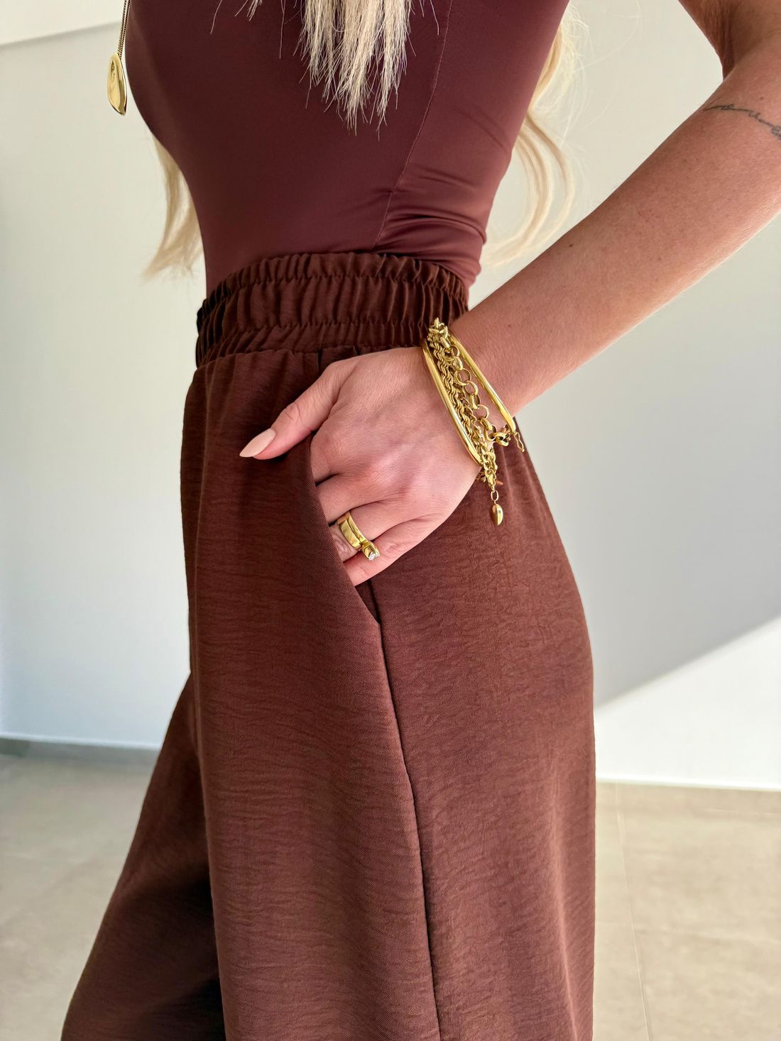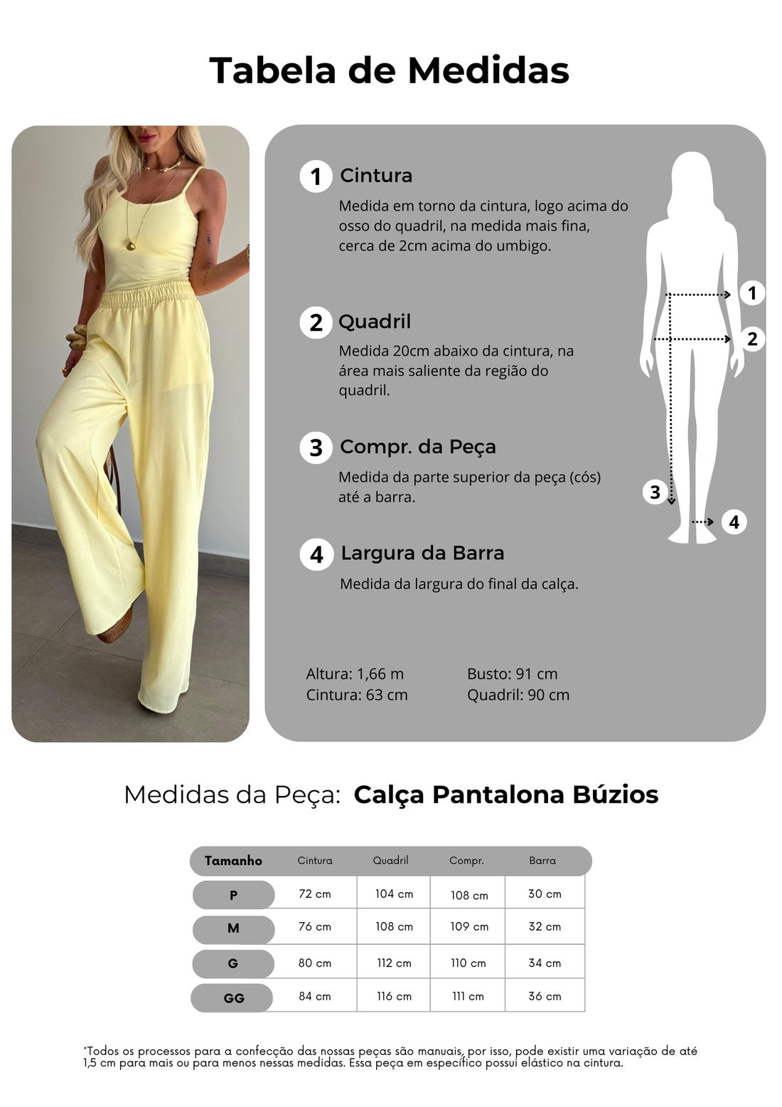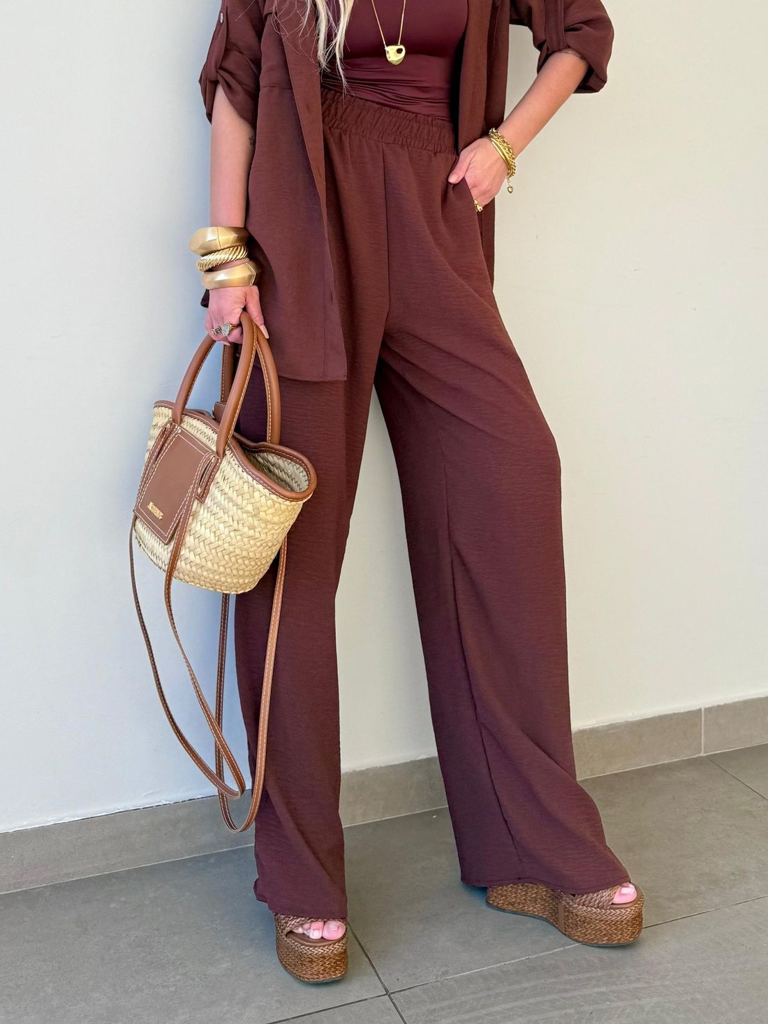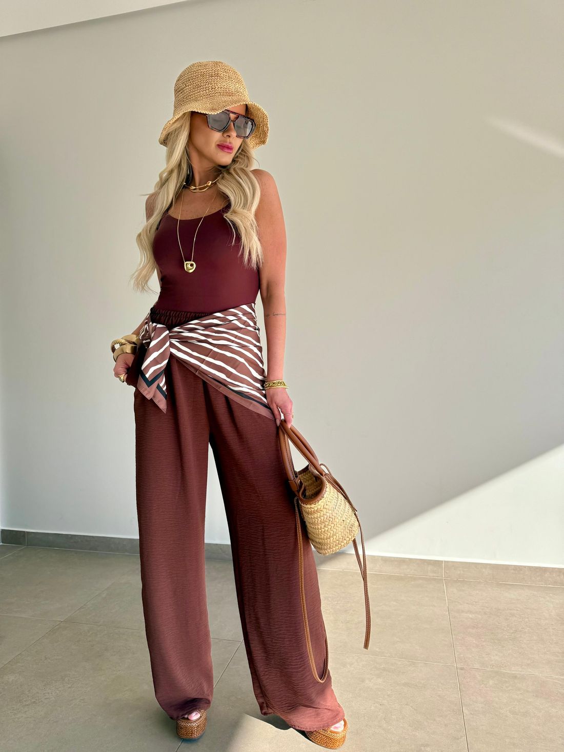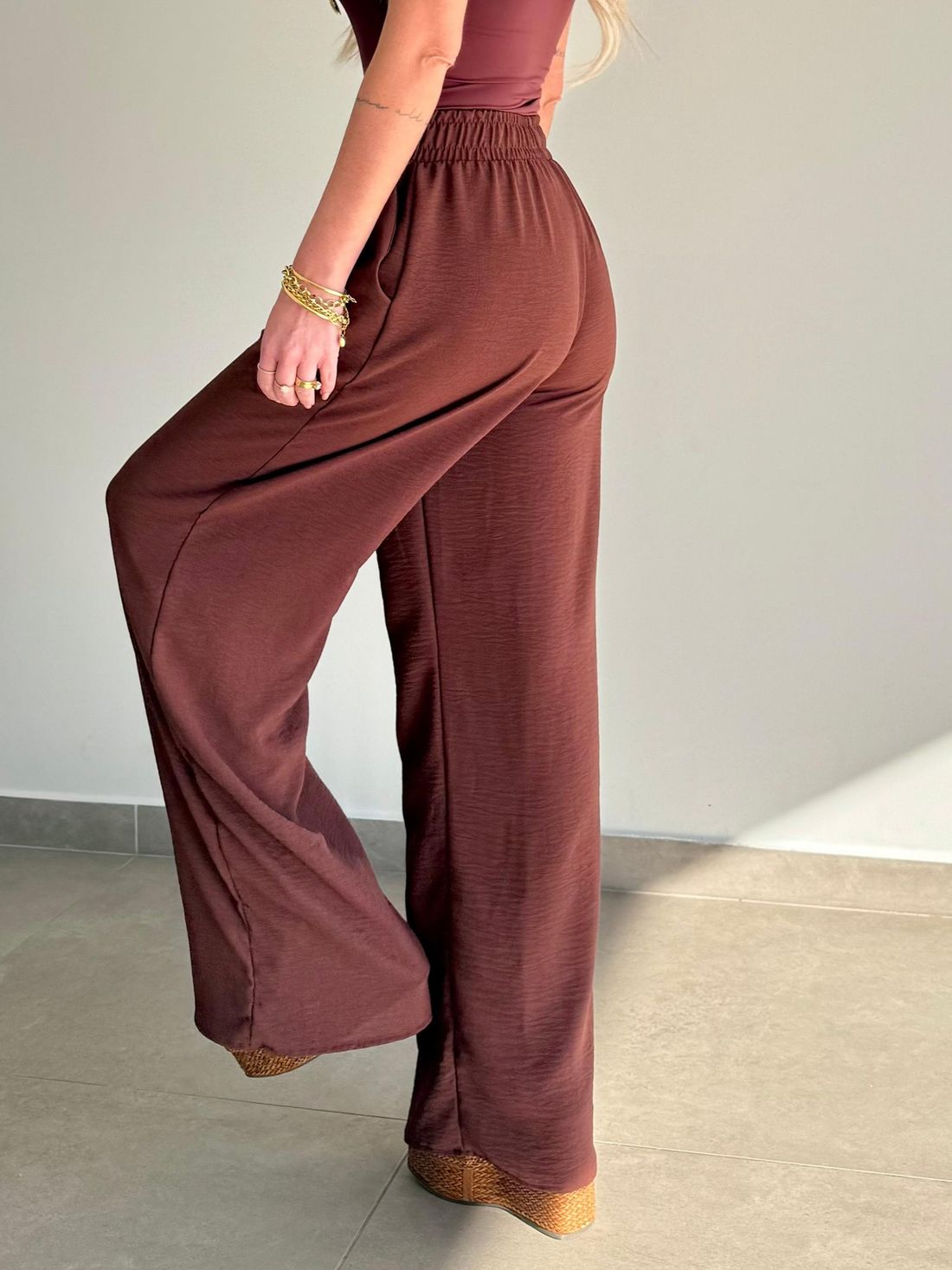 A Calça Pantalona Búzios é a escolha ideal para quem busca leveza, elegância e praticidade no dia a dia. Confeccionada em crepe Air Flow 100% poliéster, ela possui toque macio, caimento fluido e movimento natural, acompanhando o corpo sem marcar. 🤎✨