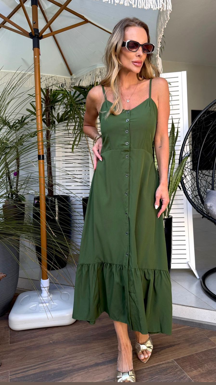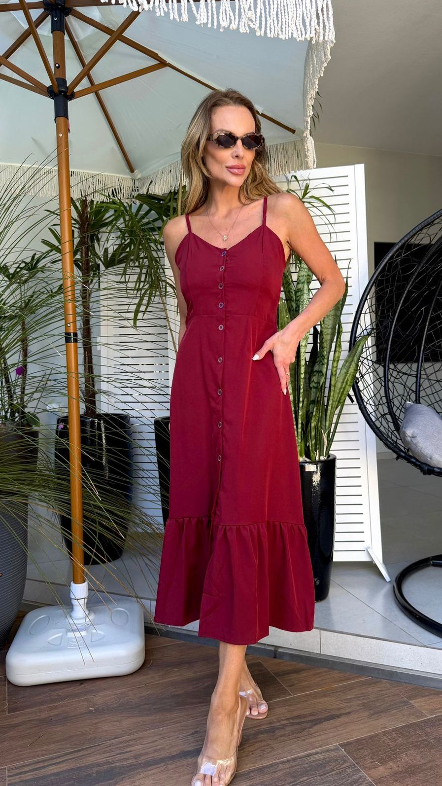 O design conta com alças finas e recorte delicado no busto, valorizando o colo sem exageros. A saia com babado na barra traz movimento suave e um toque romântico, garantindo um caimento impecável para diversas ocasiões.