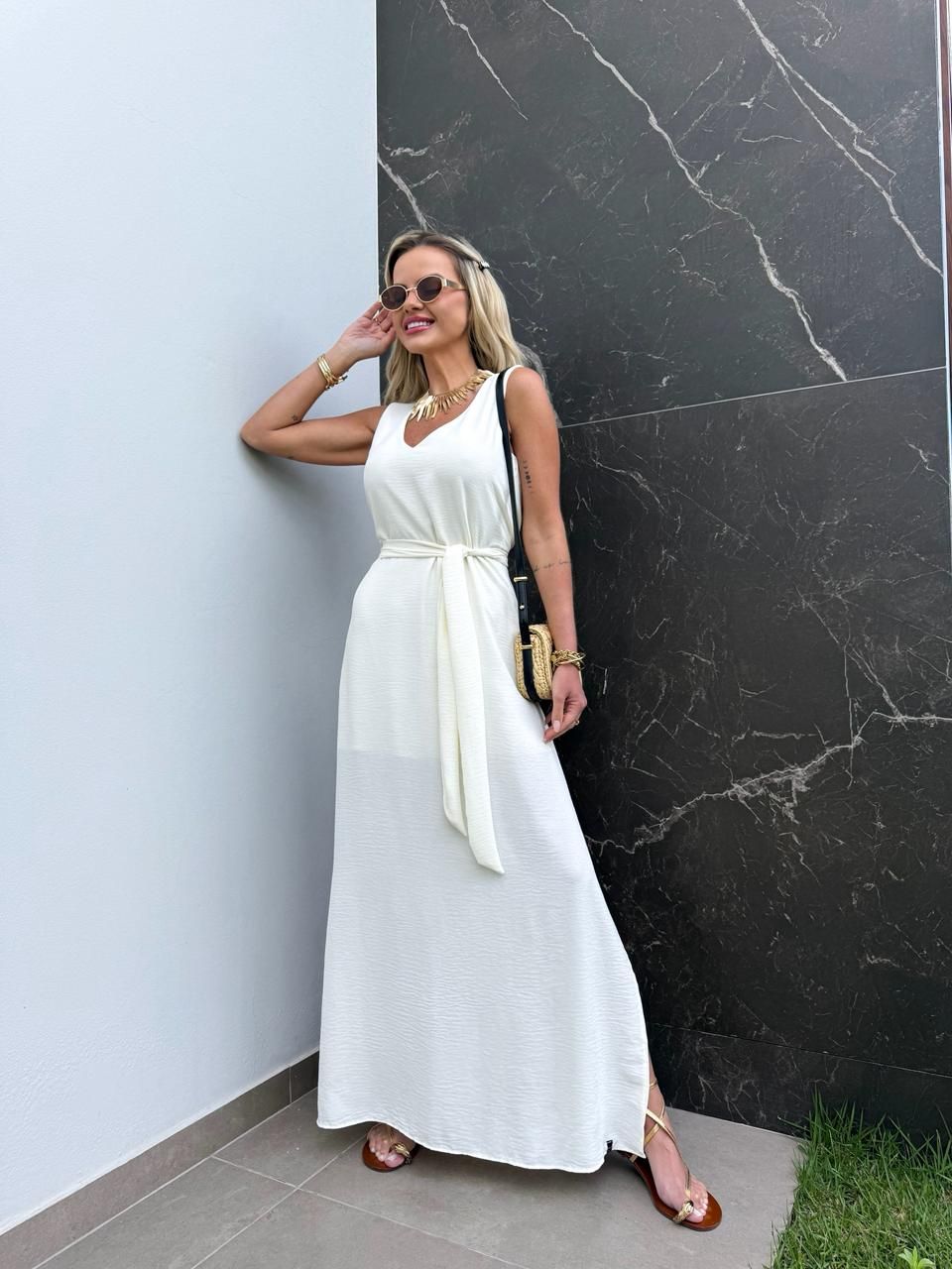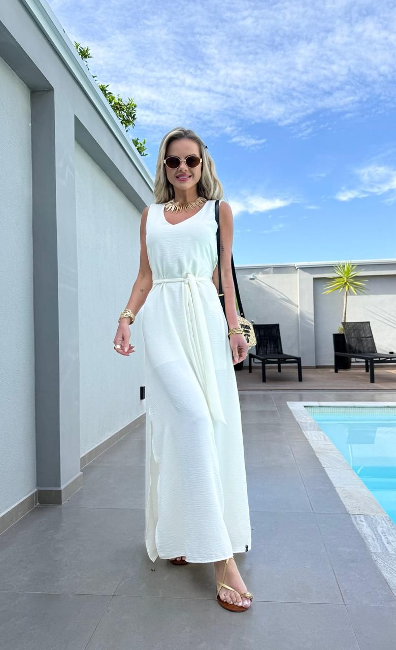 Elegante e leve, este vestido longo em crepe importado é ideal para produções frescas e sofisticadas nos dias quentes. O tecido fluido garante caimento suave no corpo e conforto ao longo do uso.