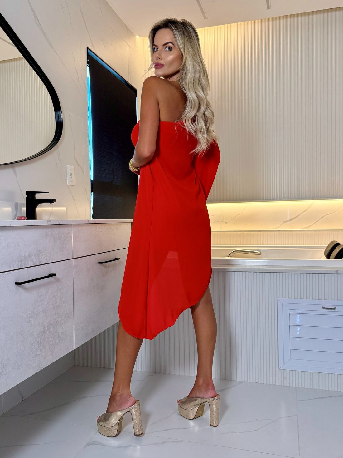 Leve, moderno e cheio de movimento, este vestido ombro único é a escolha ideal para os dias quentes. Confeccionado em crepe fluido, ele oferece caimento leve e confortável, além de ser prático para o dia a dia por não amassar com facilidade.