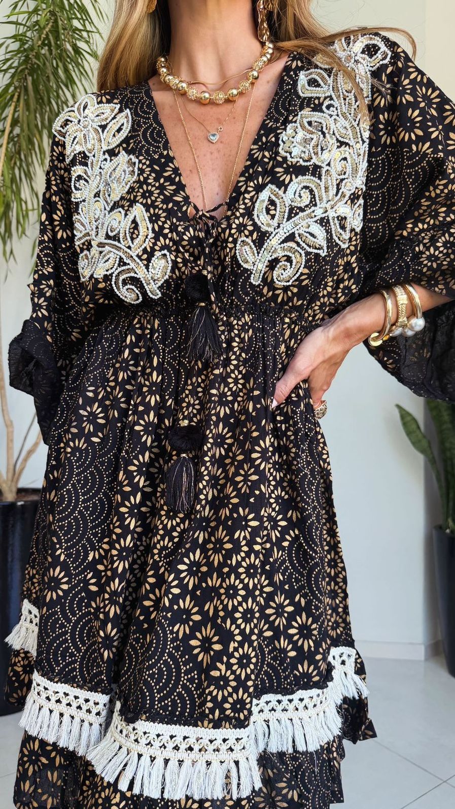 O Vestido Curto Bordado é a escolha ideal para quem busca um look elegante, leve e cheio de personalidade. Com visual boho chic e acabamento sofisticado, ele combina feminilidade e estilo em uma peça versátil e atemporal.